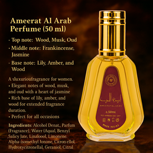- Parfum Ameerat Al Arab (50 ml) de Asdaf, une fragrance luxueuse pour femmes.